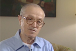 As the war came to an end, the  factories were evacuated. The SS men chose 120 men to be taken to a beautiful  camp for young, privileged German boys. It was a school to train these children  in the Nazi way. We lived 120 people in one room. There was a wood stove for  heat for the SS men who kept guard but no heat for us. I believe it was this  move that saved my life. The beatings stopped, and we were fed bread, wheat  coffee and thin soup. When we went to sleep, all 120 of us embraced each other  while standing.