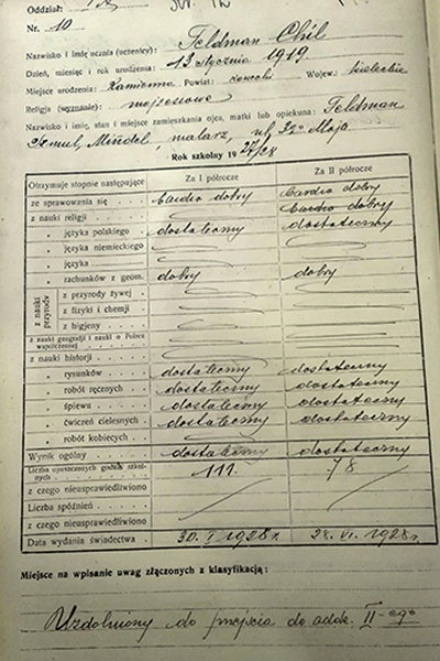 My name is Chil Feldman. I was born January 12, 1919 in Skarzysko Kamiena Poland. My parents names were Samuel Mendel and Chana Feldman.